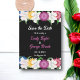 Diese elegante Blumenhochzeit erspart die Einladung zum Datum und ist ideal für eine moderne Blumenhochzeit im Sommer. Das romantische Design ist in blauen, gelben, lila und bordeauxfarbenen Rose gehalten, die mit einer eleganten, weißen Typografie auf schwarzem Hintergrund verziert sind.