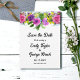 Diese elegante Blumenhochzeit erspart die Einladung zum Datum und ist ideal für eine moderne Blumenhochzeit. Das romantische Design besticht durch einen farbenfrohen Blumenstrauß in Aquarellen mit eleganter schwarzer Typografie auf weißem Hintergrund.