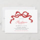 La carte a un design minimaliste et festif, centré autour d'un ruban rouge en haut. Il allie des polices sans-serif élégantes et des polices cursives élégantes, avec des accents rouges pour une touche de sophistication. L'aménagement est propre et équilibré, l'espace blanc généreux crée une esthétique moderne et raffinée.