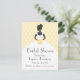 Brautdusche Einladung mit Silhouette einer eleganten Braut vor Damast Hintergrund in Gelb und Weiß.