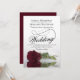 Diese wunderschöne Hochzeitseinladung zeigt ein wunderschönes Foto eines Single, das sich auf einer Seite in bordeauxroter Rose befindet und in einem Wasserbecken mit Wellen und Wellen reflektiert. Das Design verfügt über ein extravagantes Kalligraphieskript mit einem langen, lockigen Schwanz, was es sowohl modern als auch klassisch macht. Elegante, raffinierte und schicke Art und Weise, Ihre Freunde und Familie zu einem besonderen Tag einzuladen. Die Rückseite der Karte hat einen QR-Code für Ihre Hochzeitswebsite und eine kurze Notiz, in der die Leute angewiesen werden, die Website für Details und UAWG zu besuchen.