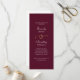Dieses weiße Schriftzeichen auf einem dunkelburgundischen Hintergrund mit goldenem Ampersand ist ein elegantes Programm für Ihren Hochzeitstag. Auf der Rückseite befindet sich das dunkelburgundy-Skript auf Weiß. Personalisieren Sie alle Informationen einschließlich der Zeremonie Details und Teilnehmer auf der Rückseite mit dem gleichen Script-Schriftart
