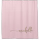 Elegante Feminine Minimalistisch Gold Monogram Name Script Signature Custom Personalisiert Blush Pink Bad Dusche Vorhang. Dieses Design mit Ihrem Vornamen in einem handgeschriebenen Stil Swash Schwanz Schriftart Signatur Typografie (oder Kalligrafie) in Gold auf rot-rosa oder Baby-rosa Hintergrund. Große stilvolle feminine Hauswärmeschenke, Jubiläum, Hochzeit, auch zum Geburtstag, Brautparty, Junggeselinnen-Abschied und Es ist für das Mädchen, das saubere minimalistische Dinge mag.