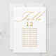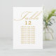 Carte de siège mariage blanc et or avec calligraphie élégante et typographie modifiable. Un design minimaliste simple et moderne qui s'adapte à vos couleurs mariages. Le tableau est écrit en écriture manuscrite et le modèle est prêt à modifier le numéro de table et votre liste de sièges d'invités.
