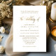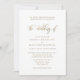 Freuen Sie sich auf diese schöne Hochzeitseinladung mit eleganten, modernen handschriftlichen Kalligrafiedetails. Eleganter minimalistischer, einfacher und klassischer Flair. Hinweis: Typografie ist nicht in realer Folie, sondern in goldener Farbe gedruckt. Zurück in Weiß, die durch die Auswahl von "Weiter anpassen" auf eine beliebige andere Hintergrundfarbe geändert werden können. Aufnahmen mit den Namen der Eltern. Teil unserer "Elegant Calligraphy Minimalistisch Wedding" Kollektion. Die gesamte Sammlung finden Sie unter: https://www.zazzle.com/collections/elegant_calligraphy_minimalist_wedding_stationery-119497981924462546