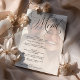 Cette carte de menu mariage exquise présente un élégant script de calligraphie superposé sur une photo romantique à flou doux, créant une esthétique intemporelle et sophistiquée. La typographie luxueuse jumelée à une disposition minimaliste assure une présentation raffinée qui complète tout thème mariage formel, classique ou moderne. Conçue pour mettre en valeur votre menu mariage soigneusement préparé, cette carte présente élégamment des entrées, des plats et des desserts dans un format facile à lire. Les tons chauds et neutres et le script gracieux apportent une touche de romantisme et de personnalisation à votre table.
