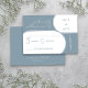 Moderne Hochzeitskarte RSVP mit eleganter Skriptkalligraphie. Minimalistisches und doch auffallendes Design in staubigen Blau- und Weißtönen. Die Koordination von Einladungen, Schreibwaren und Veranstaltungsdekoration finden Sie in meiner Sammlung von Wedding Colors. Wenn Sie andere Farben oder zusätzliche Vorlagen für passende Produkte wünschen, bitte schreiben Sie mir, dass ich sie für Sie hinzufügen soll.
