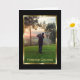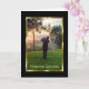 Une photo réconfortante d'un homme jouant au golf en regardant une belle scène pastorale. Les rayons du soleil éclatent à travers les arbres du fairway. Forever Golfing est écrit ci-dessous. Toute la scène de golf est entourée d'un cadre doré simple et moderne, qui est à son tour entouré de noir. Le message de condoléances intérieur dit qu'il avait toujours un sourire sur le visage et un club de golf à la main, Sincere Sympathy. Tout le texte peut être personnalisé.