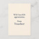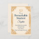 Célébrez un élève vraiment exceptionnel avec cette carte de félicitations élégante, conçue pour les enseignants, les écoles et les parents fiers qui veulent honorer le succès scolaire d'une manière significative. Doté d'un arrière - plan de style parchemin doux avec feuilles d'aquarelle et accents d'or, cette carte vous transmet un message sincère : "À un ÉTUDIANT EXCEPTIONNEL - Votre travail acharné, votre croissance et votre positivité ont eu un impact. Continuez à faire de grands efforts." 🎓 Ajoutez le nom de votre élève pour créer un souvenir personnalisé qu’ils chériront. Qu’il s’agisse de remise de diplômes, de remise de prix de fin d’année ou de reconnaissance en classe, cette carte est la meilleure façon de dire "Je vois vos efforts, et je suis fier". Le design est idéal pour les garçons et les filles ados, et le champ de nom est entièrement modifiable pour convenir à tout étudiant ou occasion.