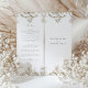 Donnez le ton pour une expérience culinaire inoubliable grâce à cette Elégante carte de menu Mariage botanique. De délicates fleurs d'aquarelle dans les tons doux du corail, du blush, de la sauge et du perwinkle ornent le haut et le bas, évoquant un cadre de jardin enchanteur. Une urne grecque d'inspiration vintage ancre le design, évoquant une élégance intemporelle. Le menu lui-même est présenté dans une police serif classique, avec des titres de cours accentués par des parchemins ornés et un arrière - plan parchemin neutre qui dégage une atmosphère chaleureuse et antique. Cette carte de menu est un festin pour les yeux, qui complétera le délicieux repas de votre événement spécial.
