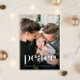 L'élégante salutation de Noël présente un beau motif botanique blanc et noir avec une paix en grand blanc, et une photo complète. S'il vous plaît acheter cette collection de fêtes festives pour la coordination des articles!