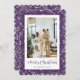 Elégante photo violet Joyeuse carte de Noël avec cadre brillant violet avec une lettre de voeux de vacances.