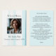 Célébrez la vie et l'héritage de votre être cher avec cette Elégante carte de prière commémorative en tissu bleu. Conçu avec un arrière - plan serein d'inspiration textile bleue, ce keepsar offre un hommage intemporel et réconfortant, parfait pour partager avec sa famille et ses amis. Vous pouvez également utiliser une photo de votre être cher et personnaliser le texte pour répondre à vos besoins.