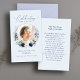 C'est une carte de prière commémorative élégante. Le design comprend une belle police de calligraphie et une couronne de fleurs et de verdure bleue et blanche. Cette carte de prière funéraire peut facilement être personnalisée avec votre propre photo pour créer un hommage spécial pour votre être cher en utilisant le modèle fourni. Veuillez contacter le concepteur pour toute question concernant ce design ou pour tout produit correspondant.