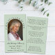 Elégante carte de prière de conservation verte pour le service commémoratif et funéraire d'un être cher. Le devant présente leur photo dans un cadre voûté, "Forever In Our Hearts" et "In Loving Memory Of" dans la typographie et le script classique, ainsi que leur nom et leur date de naissance et de mort. L'envers comporte un long passage inspirant ("Ne remplissez pas vos coeurs de douleur") et un message plus court, ou customisez avec vos propres messages ou versets bibliques.