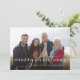 Cette carte de vacances photo contient l'expression "joyeux noël" dans un élégant script blanc moderne au premier plan et votre photo dans l'arrière - plan. Le dos est orné d'un beau motif floral d'hiver bleu et rouge ©HajDesignPapers.