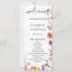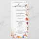 Notre carte de programme Mariage minimaliste et tendance, avec une fleur sauvage et une couleur blanche. La délicate calligraphie noire ajoute une touche de sophistication à cette carte blanche, ce qui en fait un choix idéal pour une célébration mariage moderne. Customisez ou modifiez plus loin en cliquant sur le lien "customiser plus loin" et utilisez notre outil de conception pour modifier ce modèle. Tous les styles de texte, couleurs, tailles peuvent être modifiés selon vos besoins.