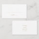 Cette élégante carte de mariage plat en or est parfaite pour une simple réception de mariage. Le design minimaliste or et blanc présente une typographie romantique avec style glamour moderne. Personnalisable dans n'importe quelle couleur. Gardez le design minimal et élégant, tel quel, ou personnalisez-le en ajoutant vos propres graphiques et artwork. Personnalisez le dos des cartes de lieux avec les noms de la mariée et du marié et la date. Achetez en gros et écrivez à la main les noms des invités et les numéros de table sur les cartes imprimées à leur arrivée.