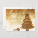 Illustration de Noël Joyeux, précieuse et élégante, avec un arbre de Noël et une boule de Noël avec un ruban en or noble sur un arrière - plan de bokeh festif pétillant.