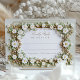 Cette carte RSVP vient compléter un thème mariage de luxe avec ses accents faux or et ses délicats arrangements de marguerite blanche. L'avant présente une section de réponse magnifiquement encadrée avec des fleurs d'inspiration métallique complexes et des détails doux vert sauge, offrant une esthétique intemporelle et moderne. Le dos présente un design élégant en monogramme ornemental dans les tons or et vert pour un look cohésif et sophistiqué. Tous les éléments, y compris les effets or et les détails d'inspiration 3D, sont imprimés, sans gaufre ni feuille métallique. Parfait pour les mariages d'inspiration nature, jardin ou printemps.