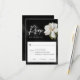 Elégante carte de réponse RSVP conçue avec un Magnolia blanc illustré sur un arrière - plan noir. Objets correspondants dans notre magasin Cava Party Design