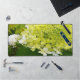 Ce grand tapis de bureau floral de My Rubio Garden présente une élégante fleur d'hydrangée verte et blanche à la chartreuse aux accents vert émeraude, jaune et blanc. Le résultat est une belle peinture moderne aux détails floraux que vous adorerez !