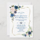 Elegante Classic Blue Pink Blume Gold Wedding Einladung