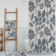 Elegante Dark Blue Floral Cream Leinwand Badematte