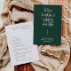 Dieses elegante Hochzeitsflach-Programm besticht durch eine elegante Kalligraphie und einen schlichten serifenlosen Typografie-Schriftart auf smaragdgrünem Hintergrund für einen puristischen und modernen Look. Dies ist eine wunderbare Möglichkeit, Ihre Gäste über die Reihenfolge Ihrer Hochzeitsfeier zu informieren und Ihren Gästen eine Gastgeschenk Hochzeit zu geben. Die Einfachheit dieses Designs verleiht Ihrer Hochzeit eine Touch Eleganz. Es funktioniert gut mit vielen Hochzeitsthemen und ist definitiv eine großartige Ergänzung zu Ihrem Hochzeitsgeschenk. Einfach Namen und Formulierungen in ein paar einfachen Schritten anpassen und das Programm personalisieren, um ihm eine angenehme persönliche Touch zu geben. Bitte beachten Sie: Die elegante Kalligraphie der Formulierungen "zu Liebe, Lachen und glücklich immer danach" zusammen mit den Zeilen und anderen grafischen Werken und Elementen kann nicht bearbeitet, gelöscht oder verschoben werden. Sie sind repariert.