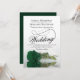 Diese wunderschöne Hochzeitseinladung zeigt ein wunderschönes Foto eines Single, der sich auf einer Seite in smaragdgrünen Rose befindet und in einem Wasserbecken mit Wellen und Wellen reflektiert. Das Design verfügt über ein extravagantes Kalligraphieskript mit einem langen, lockigen Schwanz, was es sowohl modern als auch klassisch macht. Elegante, raffinierte und schicke Art und Weise, Ihre Freunde und Familie zu einem besonderen Tag einzuladen. Die Rückseite der Karte hat einen QR-Code für Ihre Hochzeitswebsite und eine kurze Notiz, in der die Leute angewiesen werden, die Website für Details und UAWG zu besuchen.