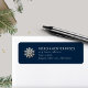Élevez votre correspondance avec notre Élégante étiquette d'adresse de retour de flocon de neige, avec un délicat flocon de neige sur un arrière - plan de la marine. Votre nom d'entreprise et votre adresse à trois lignes sont élégamment affichés dans une typographie raffinée. Parfait pour ajouter de la sophistication à votre courrier sortant et faire une impression mémorable.