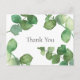 Eukalyptus verlasse Business danke Ihnen Postcard, mit delikaten Aquarellfarben Eukalyptus-Blätter, die Ihr Dankeschön Set in einem schicken Schiefergrauen Text. Dieses elegante Design ist ideal für eine breite Palette von Unternehmen, einschließlich Wellness-Center Salons Haar und Make-up Stylist Boutiquen Kosmetiker und Floristen.