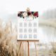 Dieses farbenfrohe, blumengeschmückte Sitzprogramm eignet sich perfekt für einen einfachen Hochzeitsempfang. Die Rose sind in Rosa, Rosa, Rot, Bordeaux, Rot, Maron und Blau gestrichen, und die Pfoten mit grünem Blattwerk sind in einem hübschen Bouquet gehalten.