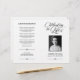 Élégant programme funéraire en noir et blanc, avec des scripts de calligraphie tourbillonnant. Sur la couverture, une photo de votre être aimé avec son nom et ses années de vie. A l'intérieur, vous pouvez écrire la nécrologie et le programme. Au verso, vous pouvez ajouter des accusés de réception. Pliez-le vous-même pour un programme pratique !
