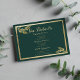 Elégante forêt moderne verte et feuille d'or Mariage détails invitation. Cette faire-part de mariage glamour chic est parfaite pour toute fille glamour classe et sophistiquée. Ce design est idéal pour un événement de fête branché et élégant. Concevez avec votre propre message et informations. Tous les dessins sont imprimés.