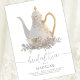 Une théière en porcelaine et une théière sont entourées de jolies fleurs sur cette élégante invitation au thé à la douche nuptiale. La théière a des accents dorés et de belles fleurs peintes dessus, tout comme la coupe délicate de coordination. Le script Extraordinaire écrit à la main ajoute à l'aspect. Un design si merveilleux pour votre thé nuptial. Voir la coordination des articles dans notre boutique, Enchanted Finch.