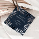 Ein elegantes Geschenk-Tag mit handgezückten Kiefernästen in einer festlich silber und marineblau Urlaubspalette, entworfen von Stacey Meacham.