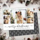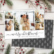 Elegante Kalligrafie Einfache Schwarz, Grau und Weiß 5 Foto Collage Frohe Weihnachts Script Holiday Card. Diese festliche, minimalistische, fünf (5) Foto-Urlaubskarte verfügt über eine hübsche Foto-Collage und sagt "Frohe Weihnachten"! Der "Frohe Weihnachten"-Grußtext ist in einem schönen handgeschriebenen Wirblen Swash-Schwanz Schriftart-Typ geschrieben. Auf der Rückseite gezeichnete Pinienwalddoodle-Muster. Hübsche Grußkarte für Ihre Familie und Freunde in der Winterferienzeit.