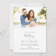 Mit dieser romantischen Hochzeitseinladungskarte laden Sie stilvoll ein, mit einem weichen, weißen Farbverlauf, der Ihr eigenes glückliches Paar Foto mühelos in das Design einfügt. Das luxuriöse Skript fügt eine elegante und leicht lesbare Touch hinzu, die die Namen von Hochzeiten und besondere Details hervorhebt. Personalisieren Sie mit Ihrem Lieblingsbild, Ihrer persönlichen Nachricht oder Ihrem Datum, um eine perfekt einzigartige und unvergessliche Einladung für Ihre Feier zu schaffen.