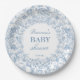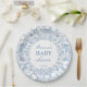 Eleganter französischer Kinoiserie Barock Vintager Garten botanische staubblaue Babydusche mit Monogramm Teller Vorlage personalisiert Babyduschtisch Dekoration Partys staubige blaue botanische Papieren Teller personalisierte Teller gedruckte Papier Teller Baby Duschgeschirr Babydusche Babydusche Zubehör