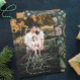 Lassen Sie sich von dieser eleganten Script-Kalligraphie Familie Foto-Urlaubskarte verzaubern! Moderne Aquarellböden mit Beeren, Heiligem, Kiefer, Baumwolle und Eukalyptus in gedämpften Erdtönen erheben dieses skurrile und festliche Kartendesign auf der Rückseite.