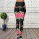 Elegante Fuchsia Pink Rose Blume Black Leggings