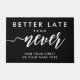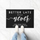Begrüßen Sie Ihre Gäste mit Spaß und Stil mit diesem Funny Welcome Doormat. Die spielerische Botschaft "Better Late Than Never" mit einem modernen, weißen handgeschriebenen Schriftart auf elegantem, schwarzem Hintergrund verleiht jedem Einstieg eine unterhaltsame Drehung. Dieses anpassbare Doormat erlaubt es Ihnen, es mit Ihrem eigenen Text, wie z.B. Ihrer Adresse oder einer Nachricht, die Sie anzeigen möchten, zu personalisieren. Ideal, um Ihrer Wohngestaltung eine einzigartige, einladende Touch zu verleihen und gleichzeitig eine freundliche Atmosphäre zu schaffen. Diese personalisierte Begrüßungsmatte ist eine praktische und stilvolle Art, die Besucher zu begrüßen. Sie eignet sich hervorragend für die Hauswärme und für alle Anlässe.