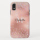 Ein elegantes, Girly Shiny Imitats Rose Gold-Folie iPhone Gehäuse. Eine goldene Folie aus Imitat Rose mit rosa und goldenen Diamanten. Benutzerdefiniert personalisiert können Sie Ihren Namen und Monogramm zunächst hinzufügen oder löschen. Großartiges Geschenk für alle, die Glitzer und Glam Liebe. Bitte beachten Sie: dieses Design ist ein gedruckter Foto-Effekt ohne echten Glitzer, Folie und Schmuck.