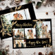 Elegante Gold Blätter 4 Foto Collage Weihnachtskar