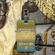 Gepäckanhänger mit elegantem goldfarbenem, grün und blau gestreiften Design.
