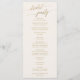 Dieses elegante Goldkalligrafie-Elfenbeinhochzeitprogramm ist perfekt für eine einfache Hochzeit. Das neutrale Design besticht durch eine minimalistische Karte, die mit romantischen und skurrilen Imitaten mit Goldfolien-Typografie dekoriert ist. Geben Sie den Namen der Braut und des Bräutigams, das Datum und den Ort der Hochzeit, Dankeschön-Nachricht, Dienstordnung, Brautparty und ein optionales "in Loving Memorial" ein. Bitte beachten Sie: Dieses Design enthält keine echte Goldfolie. Es ist eine hochwertige Grafik, die wie Goldfolie aussieht.