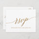 Cette élégante carte postale RSVP de choix en calligraphie or est parfaite pour un mariage simple. Le design neutre présente une carte minimaliste décorée avec une typographie romantique et fantaisiste de feuille d'or. Cette carte postale de réponse mariage demande à la clientèle quel repas elle souhaite à la réception. Remarque : Ce design ne comporte pas de véritable feuille d'or. C'est un graphisme de haute qualité fait pour ressembler à du papier doré.