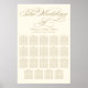 Das elegante schwarze Kalligraphie-Skript für Hochzeitssitzplakatdesign enthält ein Monogramm der Braut- und Bräutigamen, das Hochzeitdatum und den benutzerdefinierten Vorlagentext für neunzehn (19) Tischnummern und Gästennamen. In den Farben sind Elfenbein und Champagnergold enthalten.
