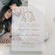 Mit unseren eleganten Gold Floral Wappen Monogram Vellum Hochzeitseinladungen machen Sie einen bleibenden Eindruck. Dieses luxuriöse Design besticht durch ein wunderschön detailliertes Wappen, das mit vergoldeten Blume und botanischen Elementen geschmückt ist und die individuellen Monogramm-Initialen des Paares auf einem schlichten, weißen Vellum-Hintergrund abbildet. Die Goldkalligraphie zeigt die Namen des Ehepaares und die Einzelheiten der Hochzeit und schafft so ein zeitloses und gehobenes Aussehen. Ideal für Paare, die eine raffinierte und raffinierte Ästhetik suchen, verbindet diese Einladung botanische Schönheit mit goldener Eleganz und macht sie zu einer idealen Wahl für formelle oder halb-formale Hochzeiten. Personalisieren Sie Ihre Hochzeitsarbeit zum Set - der perfekte Ton für Ihren besonderen Tag.